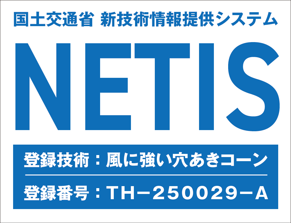 いつも株式会社カーボーイをご愛顧いただき、誠にありがとうございます。 この度、弊社が開発いたしました、強風対策用カラーコーン「穴あきコーン」が、国土交通省の新技術情報提供システム(NETIS)に登録されましたことをお知らせいたします。
